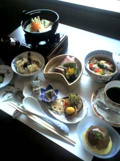 季節の八寸・お造り・豆乳湯豆腐・旬の一品(写真はグジの飯蒸しキノコ餡かけ)・松茸ご飯・吸い物・漬物・巨峰のゼリー寄席・コーヒー